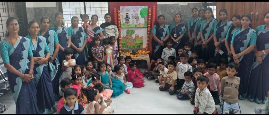 श्रीराम प्रतिष्ठान अंतर्गत प्रॉस्परस पब्लिक स्कूलमध्ये आज नागपंचमी हा सण मोठ्या उत्साहात साजरा करण्यात आला.हा सण महाराष्ट्रात मोठ्या उत्साहात साजरा केला जातो . महाराष्ट्रातील एक महत्त्वाचा सण, नागपंचमी हा नाग देव शेषनागच्या सन्मानार्थ पवित्र श्रावण महिन्याच्या पाचव्या दिवशी साजरा केला जातो. नागाची पूजा हा महाराष्ट्रातील एक महत्त्वाचा विधी आहे आणि या सणाला घरोघरी मातीपासून बनवलेल्या नागाची पूजा केली जाते. त्याप्रमाणे आज शाळेतही माती पासून बनविलेल्या नागदेवतेची पूजा करण्यात आली तसेच छोट्या चिमुकल्यांनी आज सणाच्या निमित्ताने खूप आनंद घेतला.