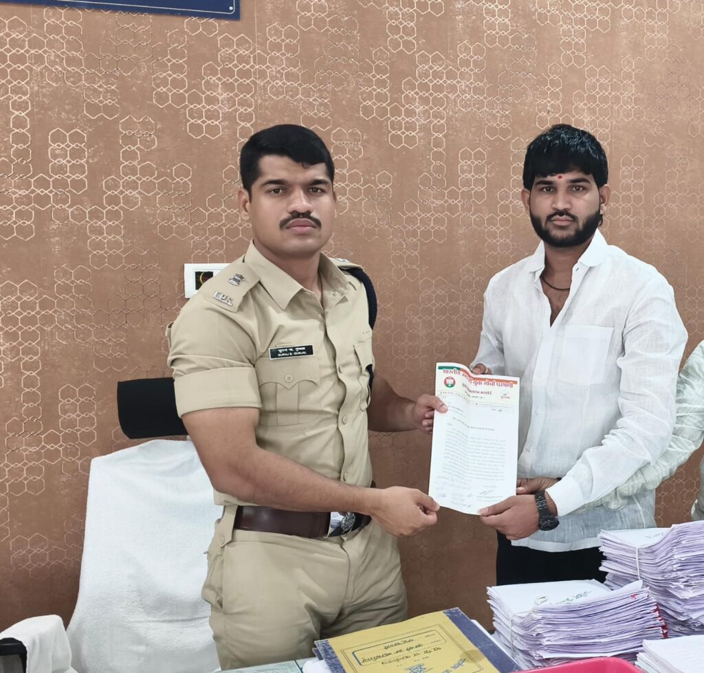 दिनांक 11 सप्टेंबर 2000 25 रोजी परभणी शहरातील अवैद्य मटका जुगार विरुद्ध कारवाही करण्याबाबत पोलिस उपअधिक्षक सूरज गुंजाळ यांना मटका विरोधक निवेदन सादर करण्यात आले दिवसा ढवळ्या मटका किंग हे खुले आम मटका घेत आहेत या मटका चालवणाऱ्या नां आर्शिवाद कोनाचा आहे यामध्ये परभणी शहरातील युवक नागरिक मोठ्या प्रमाणावर बळी पडत आहेत संसार उघडयावर येत आहे म्हणुन भारतीय जनता पार्टी युवा मोर्चा परभणी च्या वतिने निवेदन देऊन मटका क्या विरुद्ध कार्यवाही करून तो बंद करण्यात यावा त्यांच्या विरुद्ध कठोर गुन्हा नोंदविण्यात यावा अन्यथा भाजपा परभणी ग्रामीण च्या वतिने लोकशाही मार्गाने आंदोलन उभारण्यात येईल आशा इशारा निवेदना मार्फत देण्यात आला यावेळी भाजपा जिल्हा उपाध्यक्ष वतीने सुदर्शन बनसोडे यांनी निवेदन दिले.
