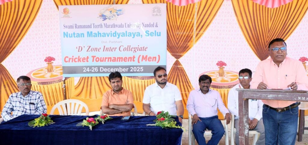 स्वा. रा. ती. म विद्यापीठ, नांदेड व नूतन महाविद्यालय यांच्या संयुक्त विद्यमाने ‘ड’ झोन आंतर महाविद्यालयीन क्रिकेट (मुले)स्पर्धा नूतन महाविद्यालय च्या मैदानावर आयोजित केल्या.त्या प्रसंगी अंतिम सामना शिवाजी महाविद्यालय परभणी विरुद्ध नारायणराव वाघमारे महाविद्यालय आखाडाबाळापूर