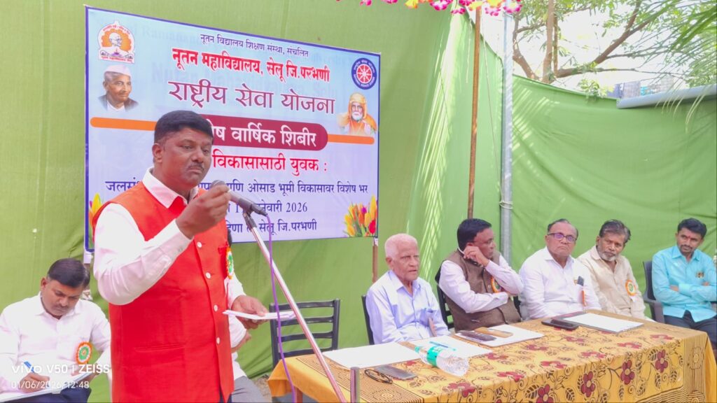नूतन महाविद्यालय, सेलू येथील राष्ट्रीय सेवा योजना विभागाच्या वतीने ‘शाश्वत विकासासाठी युवक,जलसंधारण व्यवस्थापन आणि युवकांची भूमिका’ या विषयावर आधारित विशेष वार्षिक शिबिराचे मौजे रोहिना (ता. सेलू, जि. परभणी) येथे मोठ्या उत्साहात उद्घाटन करण्यात आले.महापुरुषांच्या विचारांची शिदोरी कार्यक्रमाचे उद्घाटक प्रसिद्ध साहित्यिक व कवी राजेंद्र दशरथ गहाळ यांनी वामनदादा कर्डक यांच्या ‘ आले महात्मा फुले मुलींनचे शिक्षण केले खूले हो ‘ या कवितेच्या ओळींनी भाषणाची सुरुवात केली. त्यांनी विद्यार्थ्यांना छत्रपती शिवाजी महाराज, डॉ. बाबासाहेब आंबेडकर, सुभाषचंद्र बोस, राष्ट्रमाता जिजाऊ आणि सावित्रीबाई फुले यांचा आदर्श डोळ्यासमोर ठेवण्याचे आवाहन केले.