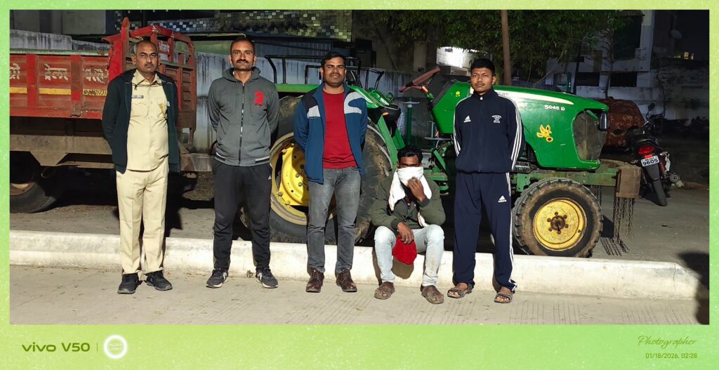 पोलिसांनी आरोपीच्या ताब्यातून हिरव्या रंगाचा जॉन डिअर कंपनीचा विना क्रमांकाचा ट्रॅक्टर (किंमत अंदाजे ५,००,००० रुपये), लाल रंगाची विना क्रमांकाची ट्रॉली (किंमत अंदाजे १,००,००० रुपये) तसेच ट्रॉलीमध्ये अंदाजे एक ब्रास रेती (किंमत ५,००० रुपये) असा एकूण ६,०५,००० रुपयांचा मुद्देमाल जप्त केला आहे.